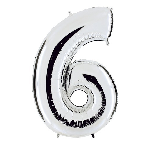 GLOBO NUMERO 6 ORO-PLATA -NEGRO -ROJO-FUCSIA-AZUL